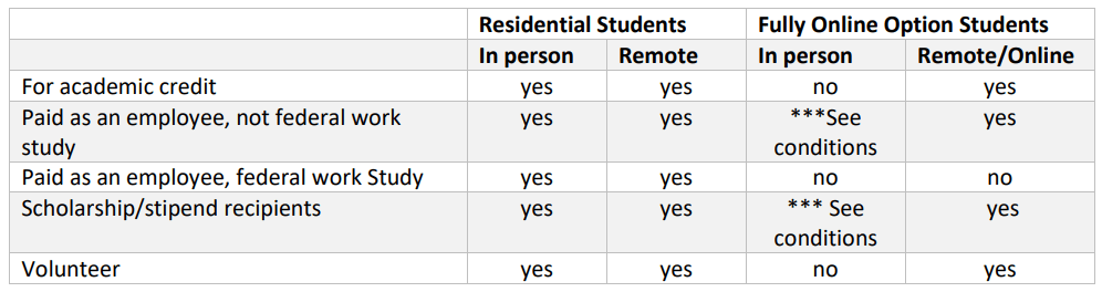 Undergraduate student in the fully online option may participate in undergraduate research on-campus (or in-person at an off-campus site) ONLY IF: