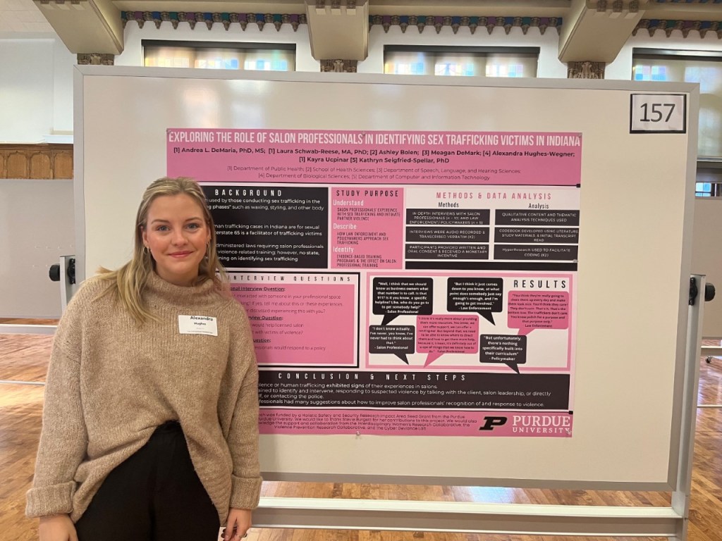 Hughes’s project on exploring the role of salon professionals in identifying sex trafficking victims was funded by the Holistic Safety and Security Research Impact Area Seed Grant provided by the Purdue Polytechnic Institute. Through this grant, Hughes and her team were able to compensate both the research participants and the translators who helped prepare the surveys that were distributed to salons across Indiana. She first began her research during the 2021-2022 academic year as an OUR Scholar and was able to extend her research into the Summer of 2022 to assemble preliminary data and prepare for upcoming research conferences. This summer scholarship was provided by the Division of Summer Session.
