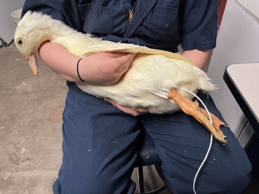Bella, Serena, and Collette each played an equal role in contributing to the research project, from working with and caring for live ducks to collecting and analyzing the data, and finally reporting the findings through presentations and reports. Since their work involved live animals, multiple researchers were needed to track the various data points. For example, while someone was taking the ducks’ vitals another researcher was recording the ducks’ physiological response to different sound stimuli.